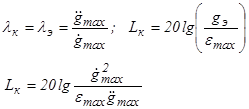 Если же ускорение равно максимальному, а скорость убывает, то контрольная точка движется по прямой с наклоном -40 дБ/дек в диапазоне частот