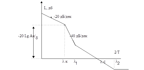 -20 дБ/дек. Протяженность участка определяется требованиями к показателям качества. Так, чем данный участок длиннее, тем ближе переходный процесс к апериодическому.