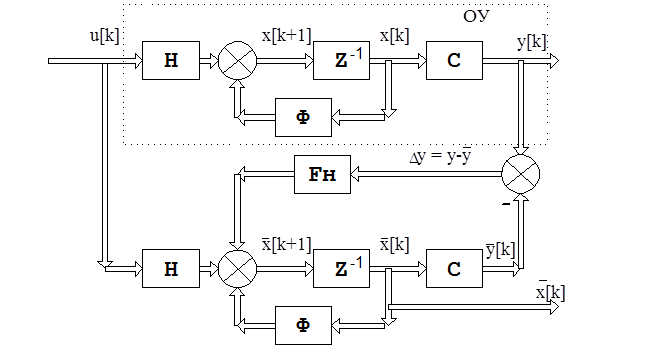 Можно заметить, что наблюдатель представляет из себя модель объекта, на которую воздействует вектор ошибки