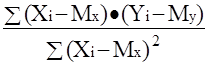 При наличии результатов наблюдений над парами Xi и Yi предварительно вычисляются средние значения My и Mx, а затем производится оценка коэффициента b в виде