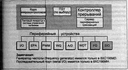 Рис. 18. Типовая архитектура микроконтроллеров семейства MCS-196 на примере микроконтроллеров для управления двигателями 8xC196MC/MD/MH.