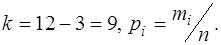 , где mi – число отмеченных значений случайной величины, попадающих в i-й интервал или принимающих i-е значение. Всего r интервалов. В каждом интервале должно быть не менее 5...10 значений.