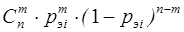 нарушений электроснабжения. Апостериорные величины их определятся на основе биномиального распределения согласно выражению