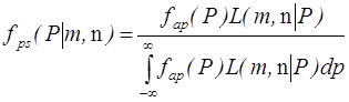 – апостериорная плотность, характеризующая то же распределение после того, как к априорной информации, полученной из экспертного опроса, добавилась информация, извлечённая из статистических данных;