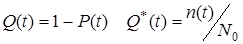 – число изделий в начале испытаний, при большом числе изделий статистическая оценка практически совпадает с вероятностью P(t);