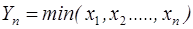 Пусть имеется случайная выборка объемом n, взятая из бесконечной совокупности, имеющей распределение F(x), где х– непрерывная случайная величина. Обозначим элементы выборки x1, x2. ..., хn. Введем случайную величину, называемую наименьшим значением:
