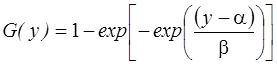 В данном случае функцию распределения экстремальных значений можно рассматривать как экспоненциальную с параметром . Предельная форма этого распределения называется асимптотическим распределением наименьших значений типа III.