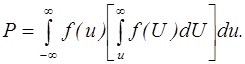 В этом случае вероятность безотказной работы есть вероятность того, что прочность U превышает напряжение и для всех возможных значений напряжения и, следовательно, записывается так: