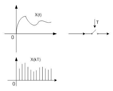Процедура преобразования сигнала непрерывного времени x(t) к дискретному (квантованному по времени) виду называется квантованием (рис. 5.4). Такая процедура отражает как реальные процессы, происходящие в цифровых системах управления, так и математические операции, использующиеся в различных сферах теории информации.