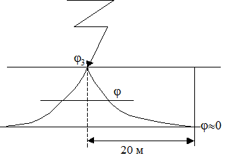 Потенциал токоведущей части падает до потенциала j3, где j3 = J3 · r3,