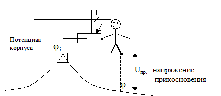 2). Напряжение шага - разность потенциалов между точками цепи тока, находящихся на расстоянии 0,8 м.