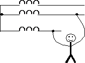 В аварийных ситуациях человек попадает под действие линейного напряжения (при неисправности фаз). К аварийным режимам относятся режимы, для которых характерно следующее: