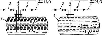 б) Горючая жидкость (нефтепродукт) хранится над водой.