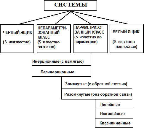 На 1-м уровне здесь располагаются классы систем, отличающиеся степенью известности оператора S.
