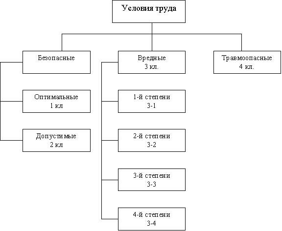 Для остальных факторов условно оптимальными считаются такие условия труда, при которых неблагоприятные факторы не превышают допустимых пределов.