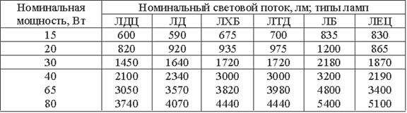 Вычисленный по формуле расчётный световой поток лампы Фр сравнивают со стандартным и принимают ближайшее значение по таблицам.