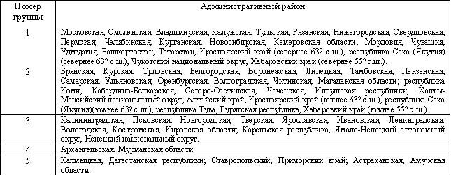 Группы административных районов по ресурсам светового климата.