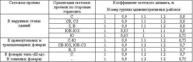 где: N – номер группы обеспеченности естественным светом в зависимости от группы административных районов РФ по ресурсам светового климата (табл. №1);