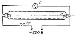 Рис. 3.1. C- стартер; Др- дроссель; Н-вольфрамовая нить накаливания