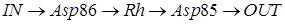 До поглощения кванта света ретиналь находится у наружной поверхности мембраны, протон электростатически связан с асп-85. При поглощении кванта света, ретиналь переходит в возбуждённое состояние, происходит его цис-транс изомеризация, протон остаётся на асп-85 и затем выделяется на поверхность мембраны. В новом положении ретиналь контактирует с асп-86 у внутренней поверхности мембраны, забирает протон от асп-86, что приводит к обратному изменению конформации. Асп-86 протонируется из внутренней среды.