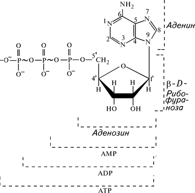 Одним из важнейших соединений нуклеотидной природы является аденозинтрифосфат (АТР) (рис. 4).