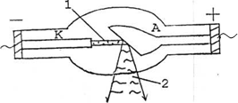 1.Фотон поглощается, электрон отрывается от атома (рис. 3б). Происходит ионизация. Оторвавшийся электрон приобретает кинетическую энергию: Eк = hv – Aи. Если кинетическая энергия велика, то электрон может ионизировать соседние атомы путем соударения, образуя новые вторичные электроны.