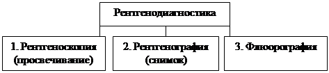 Рентгенодиагностика – распознавание заболеваний при помощи просвечивания тела рентгеновским излучением.