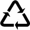 | Треугольник из 3 стрелок – знак вторичной переработки сырья, символизирующий замкнутый цикл: создание – применение – утилизация. Другими словами, упаковка или посуда, маркированная тремя стрелочками пригодна для последующей переработки. Цифры внутри треугольника говорят о типе переработанного материала: 1-19 – пластик 20-39 – бумага и картон 40-49 – металл 50-59 – древесина 60-69 – ткани и текстиль 70-79 – стекло |
