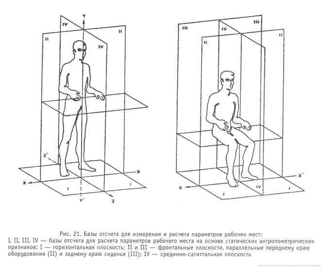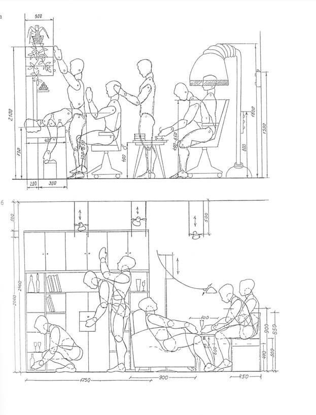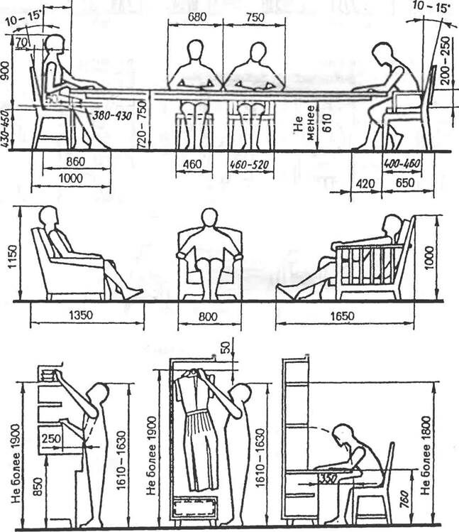 Рис. 13 Антропометрические требования к габаритам и размещению мебели