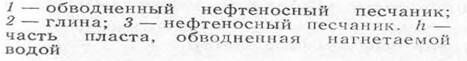 На определенной стадии разработки нефтяных и газовых месторождений пласты начинают обводняться нагнетаемыми водами. Поступление в скважину воды свидетельствует о подходе фронта закачиваемой воды либо о прорыве нагнетаемой воды. Обводнение продуктивного пласта минерализованной водой сравнительно легко установить в необсаженных скважинах с помощью метода кажущегося сопротивления и индукционного метода по заметному снижению удельного сопротивления пласта в интервале поступления вод, а в обсаженных скважинах— по данным радиоактивных методов — НГМ, ННМ-Т.