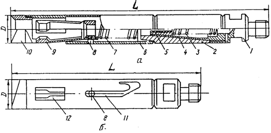 Ловители ЛКШ-114 (рисунок 62) предназначены для ловли, отвинчивания и извлечения (целиком или по частям) насосных штанг за тело или муфту в эксплуатационной колонне, а также недеформированных насосно-компрессорных труб диаметром до 48 мм.