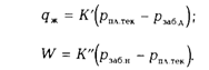 При установившейся фильтрации жидкости депрессия на забое добывающей скважины и репрессия на забое нагнетательной скважины находятся в прямой связи соответственно с дебитом по жидкости qж и приемистостью W:
