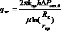 Дебит скважины по жидкости qж и приемистость скважины W при установившейся фильтрации жидкости определяют по уравнениям: