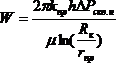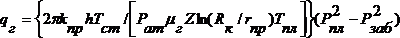 где kпр — коэффициент проницаемости; h — эффективная толщина; Тст = 273 К; Тст - (273 - tпл); Pат = 105 Па; m -вязкость пластового газа; Z — коэффициент сверхсжимаемости газа; Rк – условный радиус контура питания; rпр – приведенный радиус скважины.