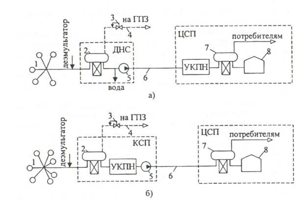 б) с подготовкой нефти в газонасыщенном состоянии на КСП.