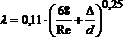 λ- коэффициент гидравлического сопротивления, который в общем случае зависит от числа Рейнольдса Re и относительной шероховатости стенки трубопровода