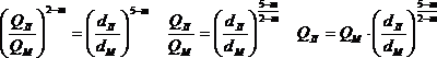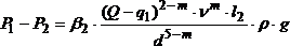 Исходя из равенства потерь напора (или давления) на сдвоенном участке (100): ΔPЛ = Δ PM и воспользовавшись формулой Лейбензона для расчета потери давления (95), можно записать для основного и параллельного трубопроводов: