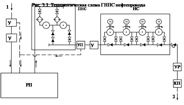 Технологические схемы ГНПС нефтепровода и ГНПС эксплуатационных участков практически аналогичны.