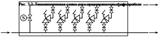 Узел предохранительных устройств (рис. 3.2) состоит из соединенных параллельно пред охранительных клапанов подъемного типа, пружина которых отрегулирована на определенное давление.