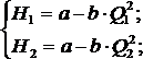 Решение данных уравнений даёт зависимости для определения численных значений a и b через известные Q1, H1 и Q2, H2: