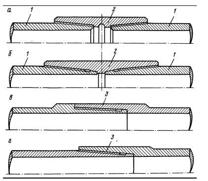 а - ОТТМ1; б - ОТТП; в - ТБО-4; г - ТБО-5; 1 - обсадная труба; 2 -муфта; 3 — безмуфтовое соединение
