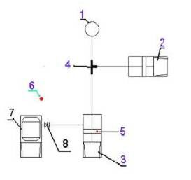 1 - устье скважины; 2 - УНЦ1-160; 3 - агрегат ЦА-320; 4 - тройник; 5 - 1-й оператор (следит за давлением по манометру на ЦА-320); 6 - 2-й оператор (следит за нагнетательной линией, находится на безопасном расстоянии); 7 - АЦ-11 с продавочной жидкостью; 8 - запорная задвижка. " Расход гидрофобизатора ИВВ-1 на 3м 3 стандартной кислотной ванны составляет 45 литров. * В продавочный раствор добавляют на 10 м3 воды 150 литров ИВВ-1.
