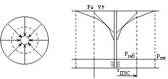 Зона кольматации – где проницаемость скважины снижена (кольматация – образование эмульсий, закупорка порового пространства).