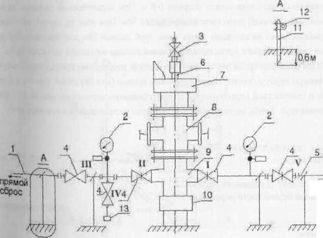 2. Выкид. линия длинной не менее 30 м. Должна иметь уклон 1,5 градуса от устья скважины и закрепляется на опорах через 6-8 м.