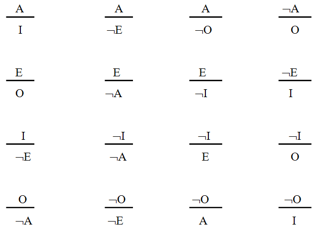 Умозаключения по логическому квадрату могут быть представлены в виде следующих схем:
