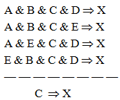 Схематически метод единственного сходства (для пяти обстоятельств) можно изобразить следующим образом (знаком Þ будем обозначать отношение причинности):