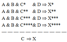 Если сложное обстоятельство (F & G & H) является причиной сложного явления (X & Y & Z), причём известно, что обстоятельство F является причиной явления Х, обстоятельство G является причиной явления Y, то, вероятно, обстоятельство Н является причиной является причиной явления Z.