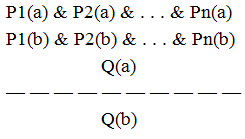 Предмет (а) назовём образцом аналогии, предмет (b) — субъектом аналогии, Q — переносимый признак, а Р1,Р2, . . . ,Рn — основанием аналогии. Примером аналогии может служить следующее умозаключение: