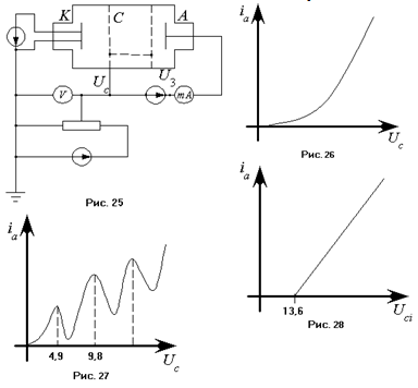 Ионизацией называется процесс отрыва электрона от атома. Для определения потенциала ионизации также используют установку, изображённую на рисунке 29. Потенциал ионизации определяется по формуле