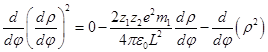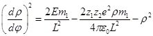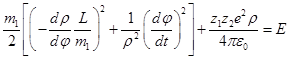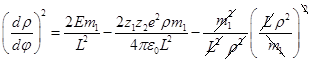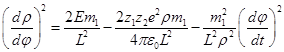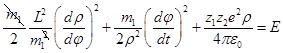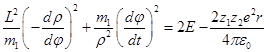 . Тогда при движении частицы в поле центральных сил, должна сохраняться энергия системы и момент импульса частиц. Запишем эти законы: